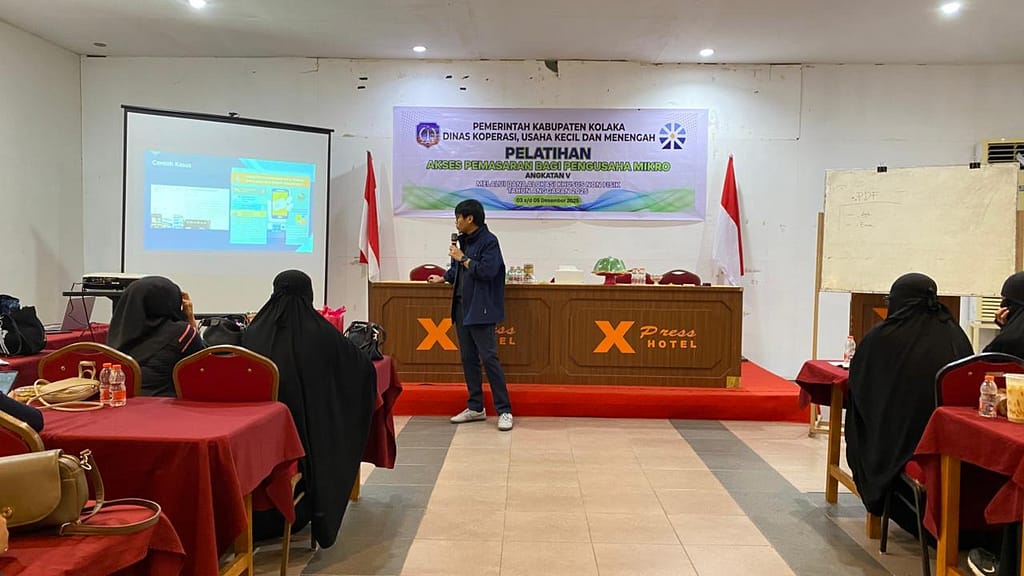 Pelatihan yang berlangsung pada 3–5 Desember 2025 di Hotel X-Press Kolaka ini menghadirkan narasumber dari Lembaga Inkubator UKM Kota Makassar. Materi yang diberikan mencakup “Pemasaran Efektif bagi UMKM: Dari Konsep Tradisional ke Strategi Modern” serta “Inovasi, Branding, dan Digitalisasi: Kunci Sukses Pemasaran UMKM Modern”.