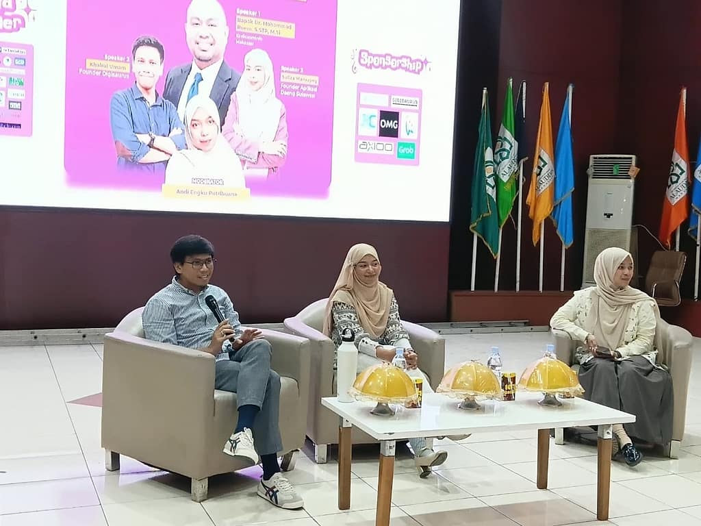 Turut hadir pula CEO Aplikasi Daeng Sulawesi, Safira Maruapey, yang menambah perspektif praktis tentang pengembangan aplikasi digital lokal. Diskusi terbuka antara pemateri dan peserta turut memperkaya wawasan mengenai peluang inovasi digital di Makassar.