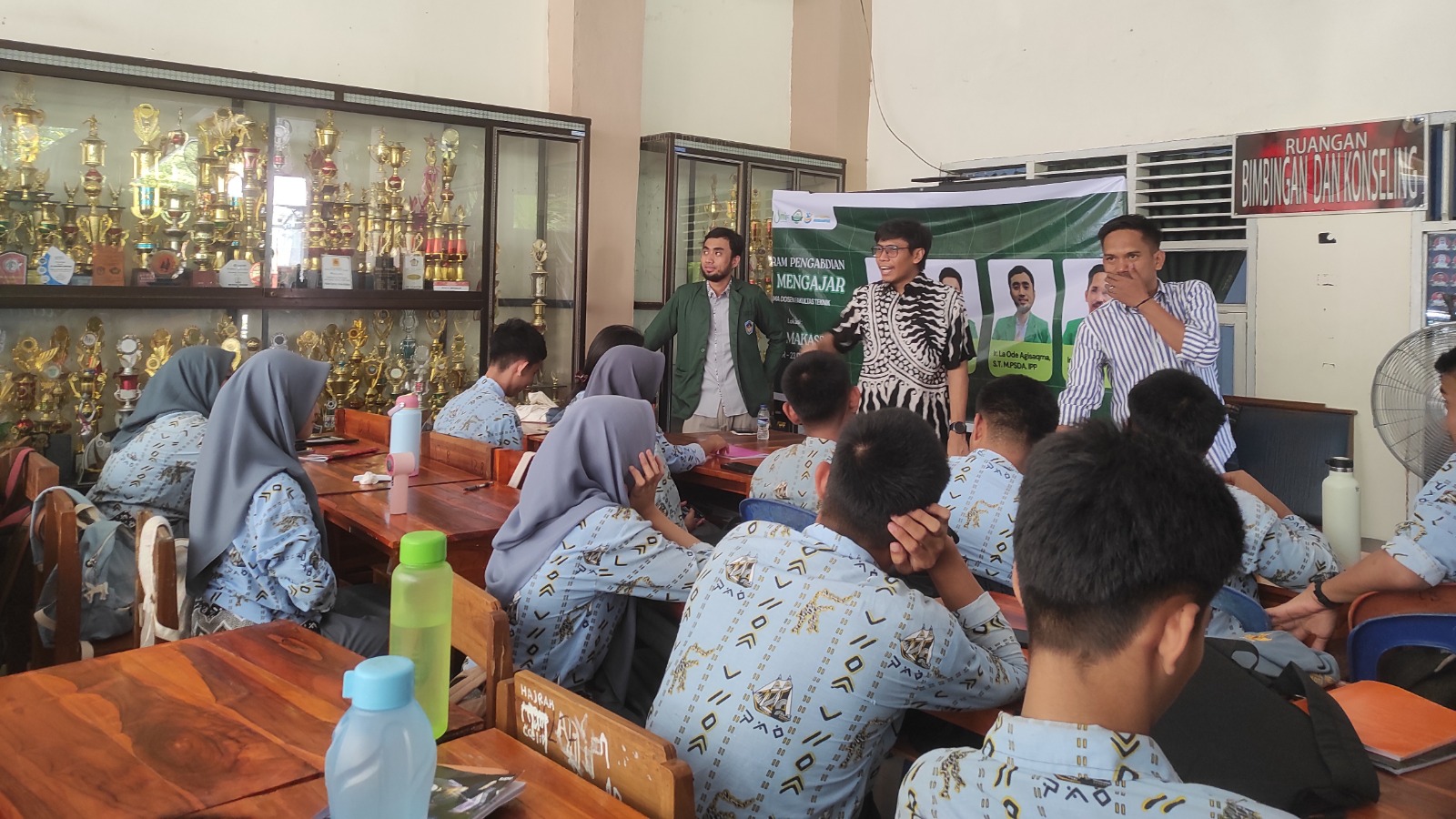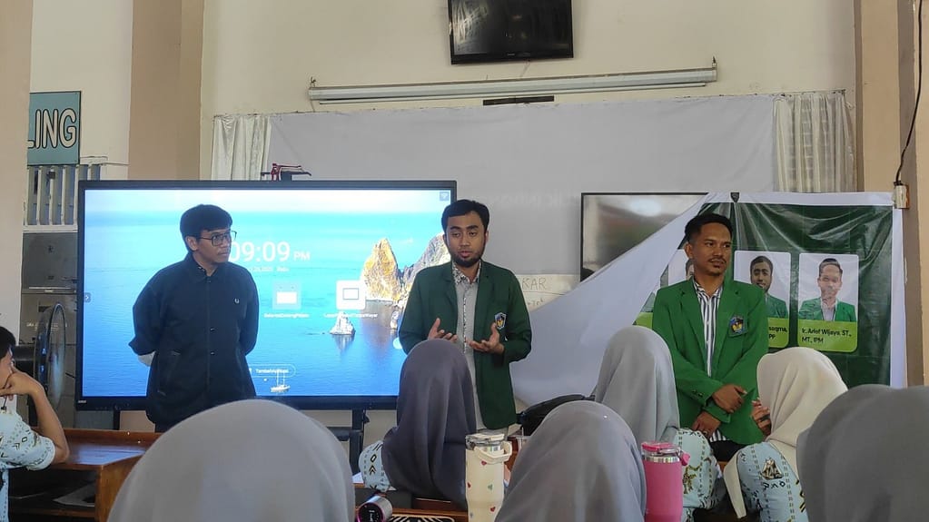 Materi pengembangan kreativitas digital disampaikan oleh Ar. Hartono, S.T., M.T. melalui pengenalan desain visual menggunakan tools digital sederhana yang relevan dengan kebutuhan era teknologi saat ini. Selain itu, Ir. La Ode Agisaqma, S.T., M.PSDA., IPP memberikan edukasi mengenai mitigasi dan kesiapsiagaan bencana, yang bertujuan meningkatkan kesadaran siswa terhadap potensi risiko bencana serta pentingnya keselamatan dalam kehidupan sehari-hari.